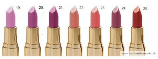 V novom exkluzívnom balení obsahuje rúže č. 3- 25 z palety vypadli odtiene 1,2,4,5,11,16,17 - tieto čísla odtieňov postupne vypadnú z ponuky.